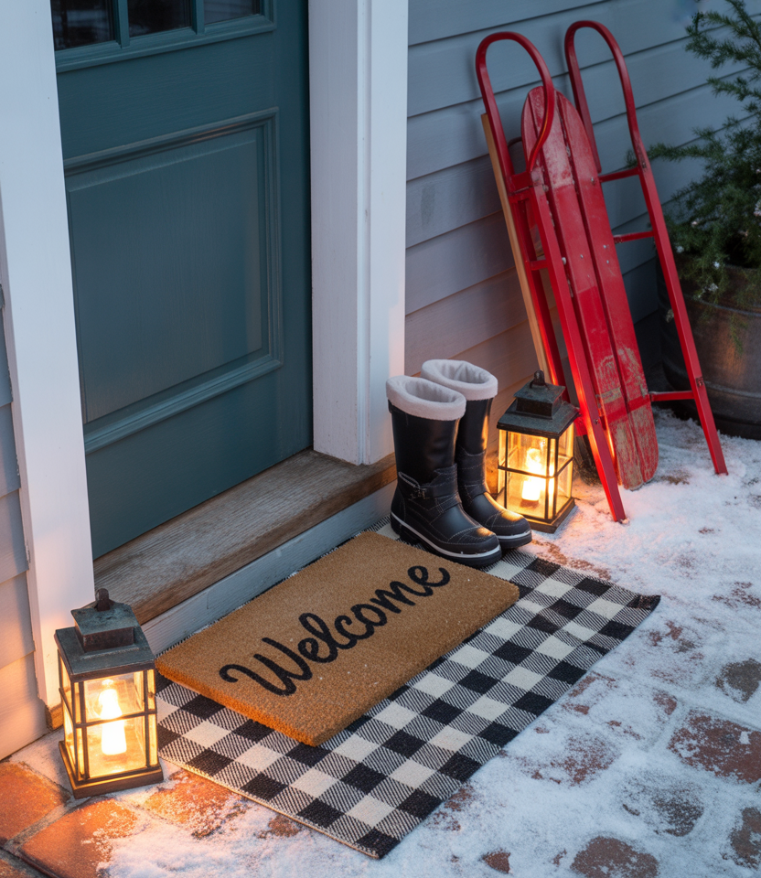 Layering doormats is a trend that works beyond Christmas front doors. Place a buffalo-check rug under a neutral mat for ideas after Christmas. It’s simple diy, inexpensive, and makes January porches feel styled. I love changing mine seasonally for personality.