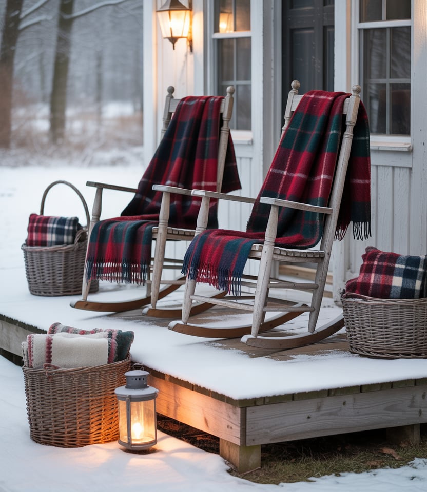 Echo the simple-and-to-the-point method of throwing a blanket over any type of seating. Plaid throws are great for farmhouse ideas, imparting a touch of nostalgia. This look feels wintry yet not Christmas-y, perfect for late-January get-togethers. One year, I hid fleece throws in baskets on the porch, and they never lasted long, as visitors kept pulling them out for snow-filled conversations. DIY tip: Pick throws that are machine washable for easy care.