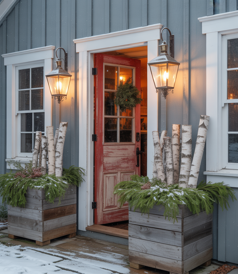 Birch logs remain a classic and simple diy winter accent. They turn Christmas pots planters into rather neutral ideas after Christmas décor. The white bark pairs nicely with evergreens and blends beautifully with ideas farmhouse. I have seen this in more upscale design blogs like The Inspired Room, and it feels upscale yet approachable for any January.